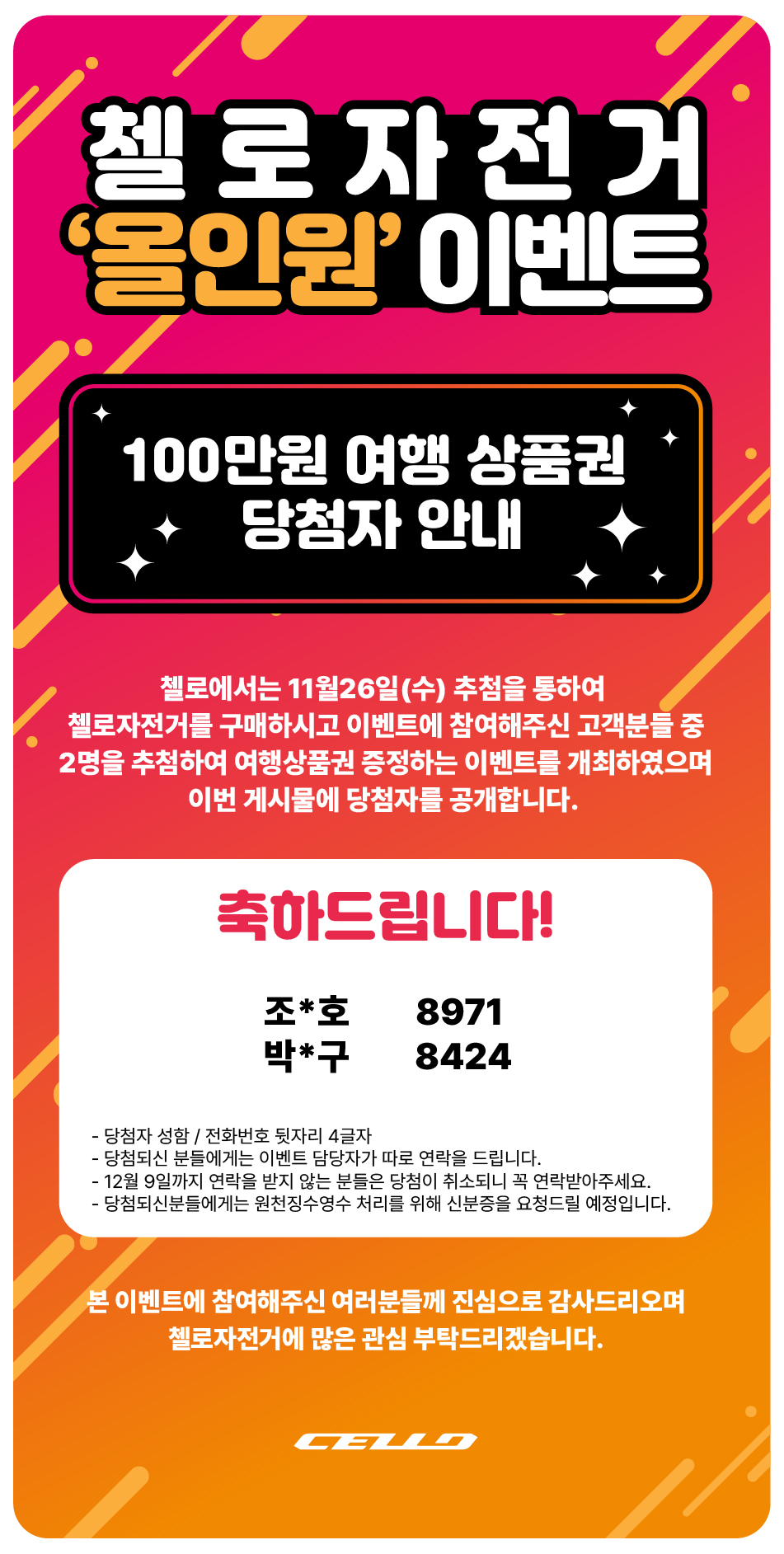 첼로자전거 트리플 혜택 이벤트 오픈! 할인 받고! 상품권 챙기고! 여행까지 떠나자!